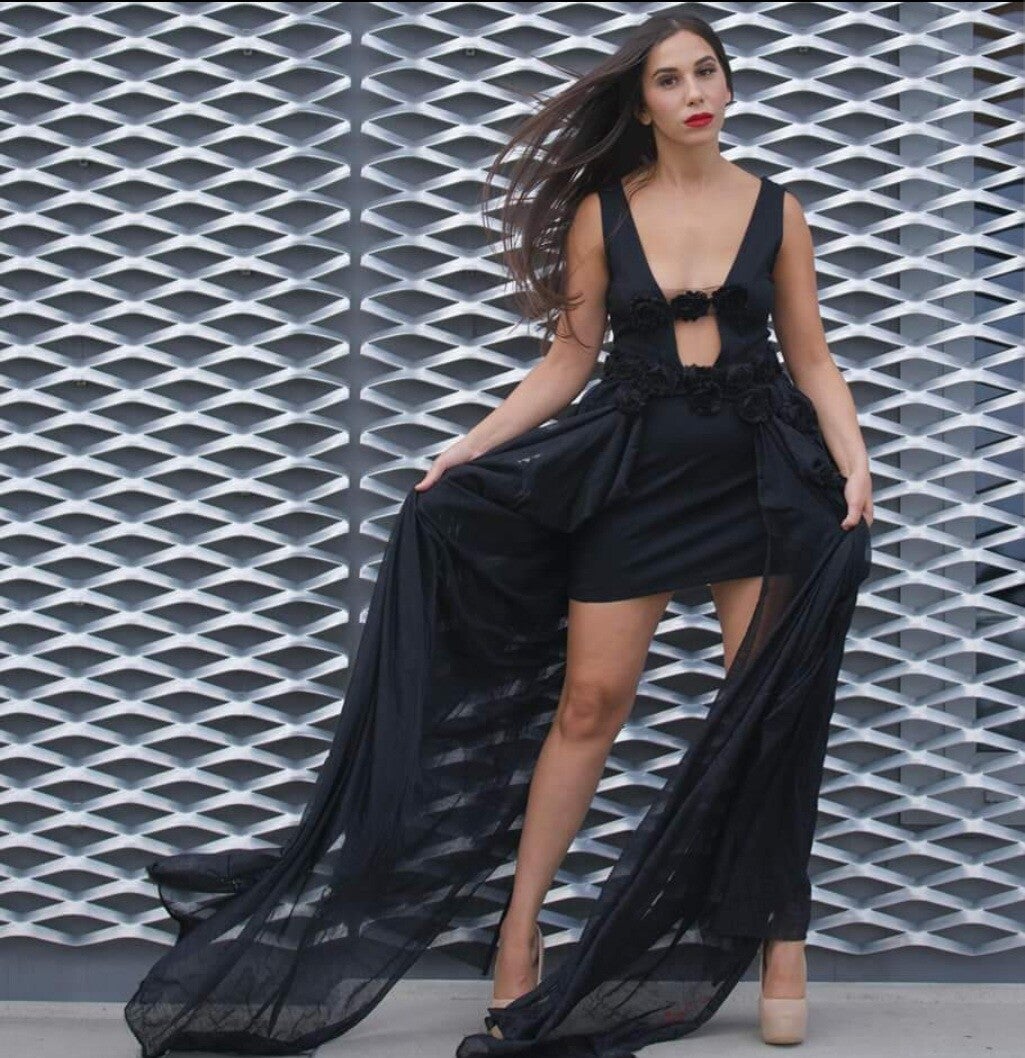 Het lijfje is gemaakt van een dikkere stretchstof waardoor de jurk past in maat 36 maar ook maat 38.